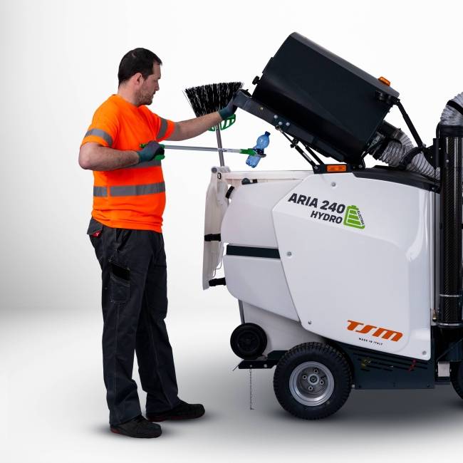 Die TSM Aria 240 ist ein vollständig elektrischer Stadt-Abfallsauger, entwickelt für eine saubere, leise und nachhaltige Stadtreinigung.